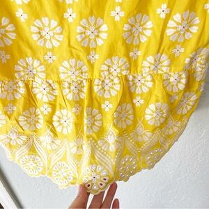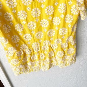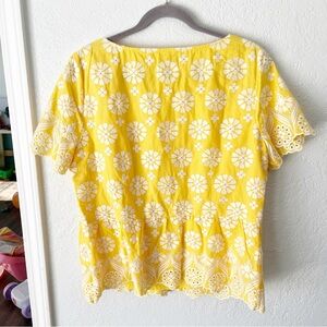 DETAILS: Talbots top women's XL, yellow and white floral embroidered, scalloped hem, subtle peplum, eyelet detail. Cotton, hand wash.