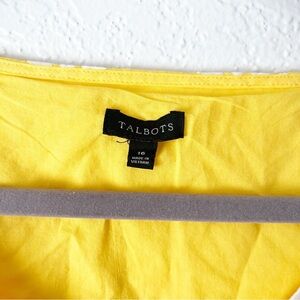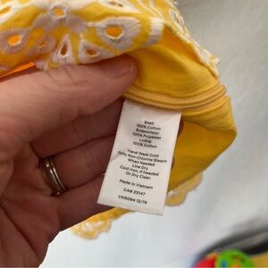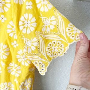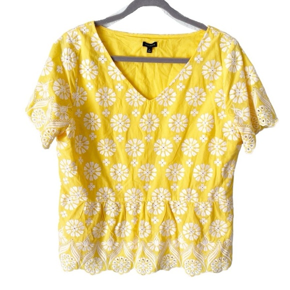 DETAILS: Talbots top women's XL, yellow and white floral embroidered, scalloped hem, subtle peplum, eyelet detail. Cotton, hand wash.