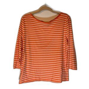 Talbots Top XL Orange White Stripe Boat Neck 3/4 Sleeve Normcore Casual Chic