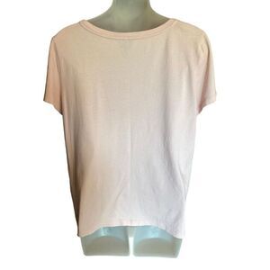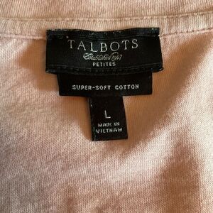 Talbots Top Blouse Scoop Neck Short Sleeve Peach Pink Leaf Appliqué Petite Large
