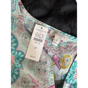 Talbots Top Womens Petite Blue Paisley Moroccan Medallion Split-Neck Tunic NWT