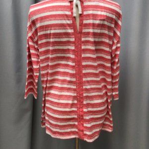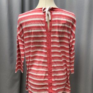 Talbots Tops Medium Orange White Stripe 3/4 Sleeve Shirt Womens Tie in the Back
