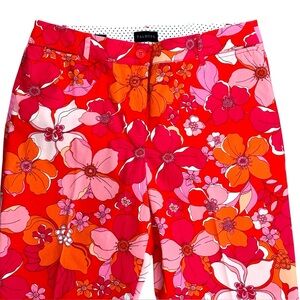 Talbots Tossed Flowers Pink-Orange-White Perfect Crop Pants Cotton-Spandex NWOT