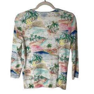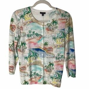 Talbots Tropical Palm Tree Cardigan XS NWT