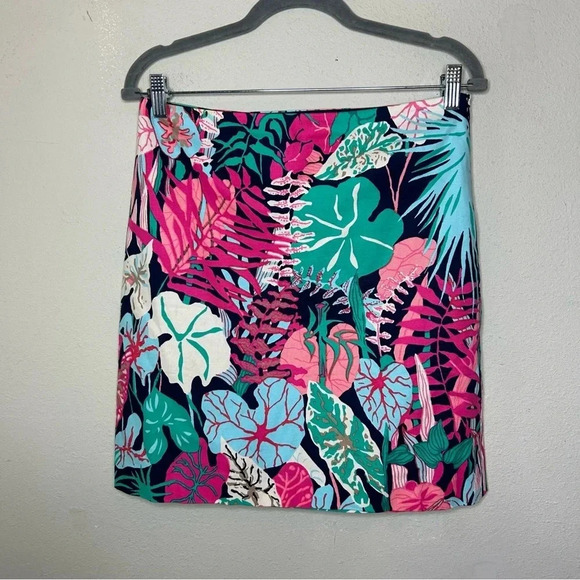 Gorgeous skirt that is very much like something you would see from Lilly Pulitzer. Size 4. Lined. Fabric is a cotton/spandex blend with a nice structure to it. Skirt is like new.