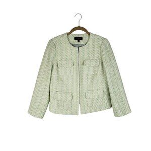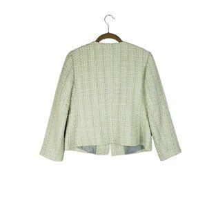 Talbots Womens Size 6P Petite Green Pastel Boucle Tweed Crew Neck Blazer Jacket