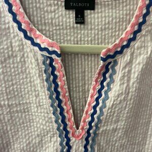 100% cotton. Pink stripes. Comfy, feminine, perfect for spring and summer. S but could fit M size as well.