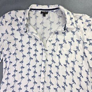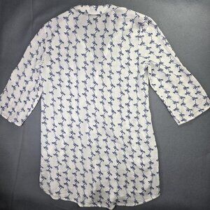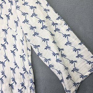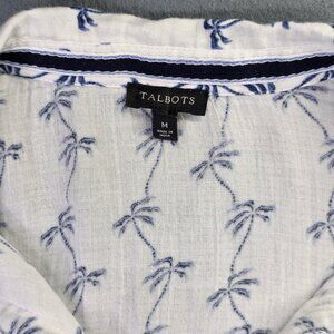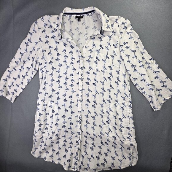 Talbots Tunic Shirt Womens M White Blue Palm Print Pockets Coverup Tropical