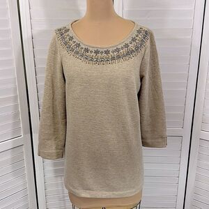 Talbots Tunic Size Medium Embellished Beige NWOT