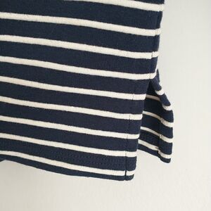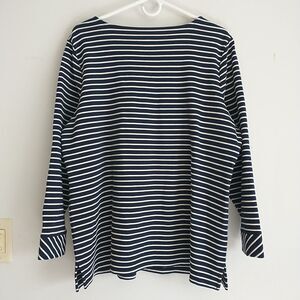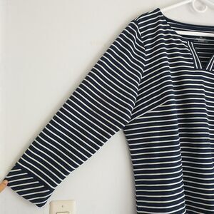 Talbots Tunic Top Women 2XPetite Blue Striped Split Neck Cotton Casual Nautical