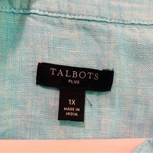 Talbots Turquoise Linen long sleeve popover blouse size 1x