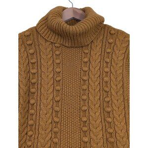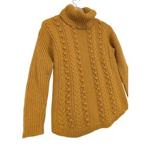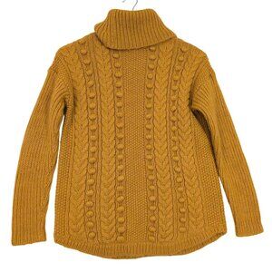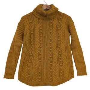 Talbots Turtle Neck Sweater Womens S Petite Mustard Yellow‎ Bobble Cable Knit