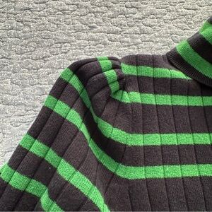 Talbots Turtleneck Green & Navy Striped Sweater Nautical Puff Sleeves Size XL