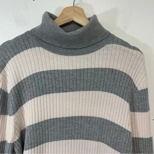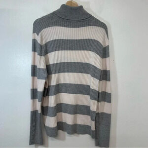 Talbots Turtleneck Sweater Woman XL Rib Knit Pink Silver Metallic Stretch