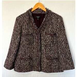 Talbots Tweed Blazer Jacket Womens Sz 14P Petite Wool Blend Fringe Lined