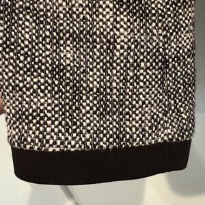 Crafted for the modern wardrobe, the Talbots Tweed Blazer in a petite size 10P offers a seamless blend of sophistication and comfort. With a sleek black tweed fabric, complemented by a classic single-breasted design, this blazer exudes a preppy, yet versatile aesthetic that's perfect for both office and social settings. Its short jacket/coat length paired with a long sleeve cut ensures a flattering silhouette for petite frames. This blazer has hook and eye closures.