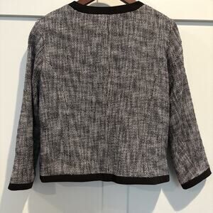 Talbots Tweed Blazer Petite 10P Black Classic Preppy Suit Jacket Grosgrain Trim