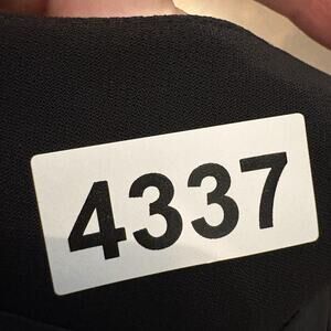Last name written on back of interior tag. Very good preowned condition—gently worn; no flaws, stains, or tears. Pockets are still sewn shut.