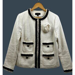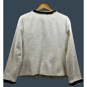 Talbots Tweed Blazer Womens Sz 10 Ivory Black Trim Chanel Style Jacket Timeless