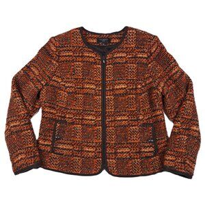 Talbots Tweed Boucle Jacket Full Zip Wool 16P Preppy Old Money Lined Womens Rust