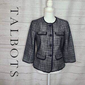 Talbots Tweed Crop Four Button Ruffle Trim Detail Blazer Jacket