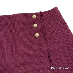 Talbots Tweed Faux Wrap Skirt Gold Buttons details Lined Fringe Size 10