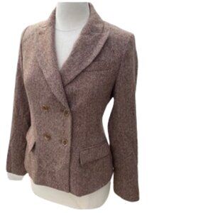 Talbots Tweed Herringbone Double Breasted Academia Wool Blazer Jacket 8 Petite
