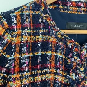 Talbots Tweed Jacket Blazer 10 Sunflower Plaid Navy Multi Preppy Old Money $199