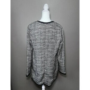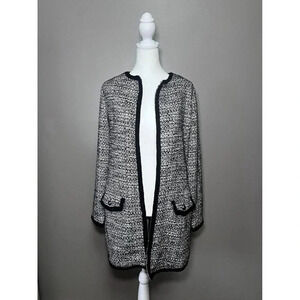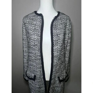 Talbots Tweed Long Blazer Coat Black White Pockets Buttons Size XS Workwear