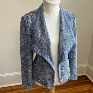Talbots Tweed Open Front Blue Blazer Jacket XL Petite