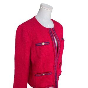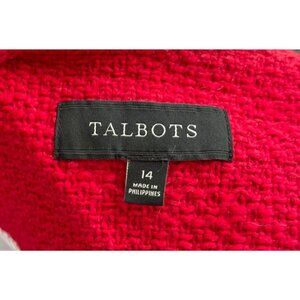Talbots Tweed Red Blazer Size 14 Cotton Navy Gold Buttons Office Career Business