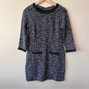 Talbots Tweed Shift Dress Womens 4 Petite Gold Buttons Front Pockets Scoop Neck