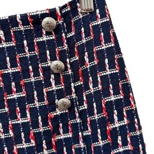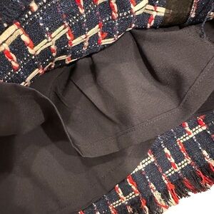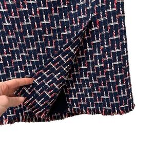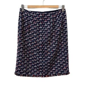 Talbots Tweed Skirt Red White Navy Faux Wrap Pencil Fringe Hem Size 4P