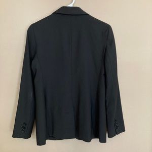 Talbots two button blazer with three pockets and one vent in black. Size 4. Longer style. Shell 87% wool 9% nylon 4% spandex. Lining 57% polyester 43% viscose. Worn only a handful of times.