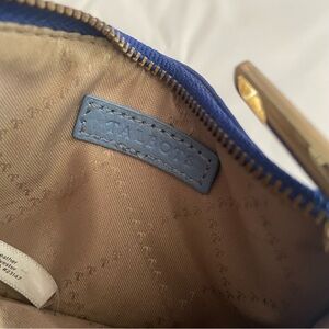 Talbot's Two Toned Blue Leather Card Case Zip Wallet Pouch Front Pocket