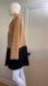 This stylish and versatile two-tone coat in tan and black can be worn in both fall and winter, making it suitable for various occasions, from casual outings to more formal events.