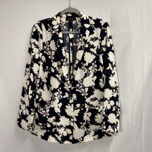 Talbots Unstructured Relaxed Floral Blazer Navy White Size Medium NWT
