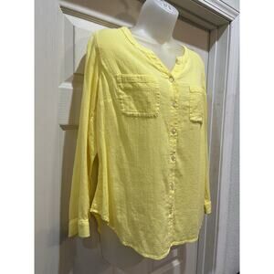 Talbots V-Neck Button Down Yellow Top Petite Sz PM