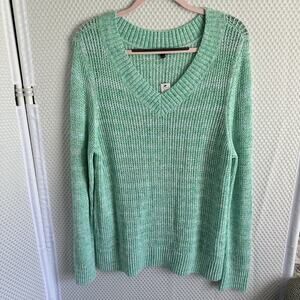 Talbots V-Neck Sweater XL Green Blue Striped Long Sleeve 100% Cotton New