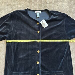Talbots VTG Black Velvet Tunic Top Blouse Women's Large Gold Buttons NWT Pockets