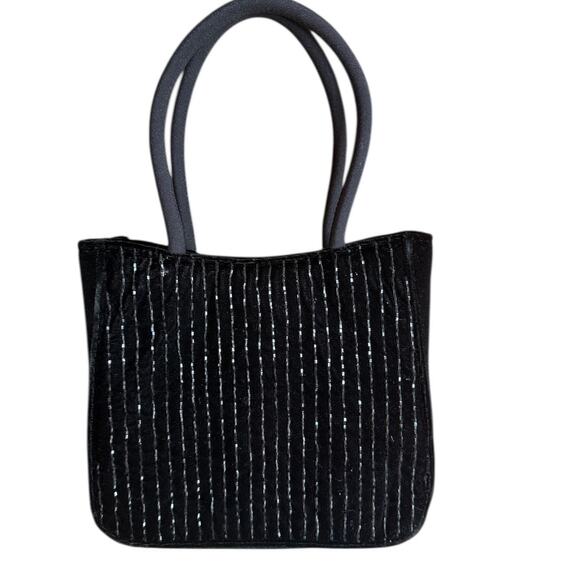 Talbots Velvet Beaded Evening Bag Black. Good preowned condition, black with black beaded accents, top handle with optional cord shoulder strap