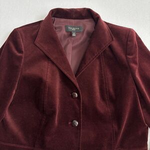 Talbots Velvet Blazer Jacket Women's 12P Burgundy Brown Peplum Holiday Party