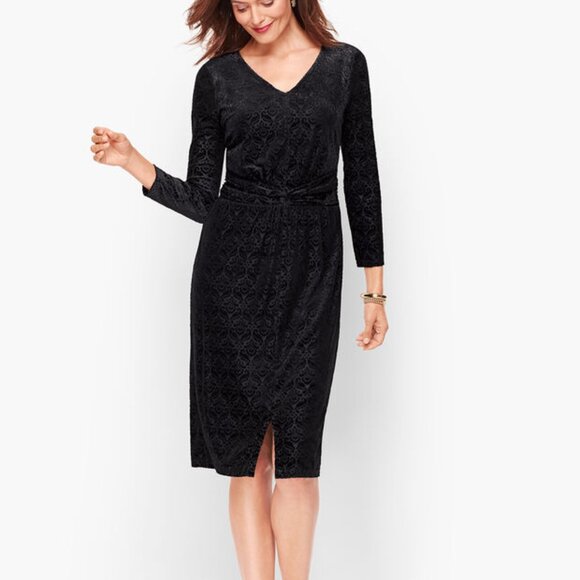 Talbots Velvet Dress X 12-14 NWT Jacquard Sheath Dress Plus Black Dress