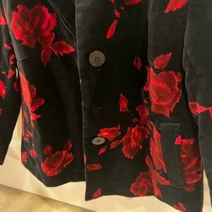 Talbots velvet floral blazer. Gorgeous floral print velvet blazer, button neckline and hidden buttons, lined, cotton, 3/4 sleeves. Size 8P Petite underarm to underarm 19.5” Length approx 22.5