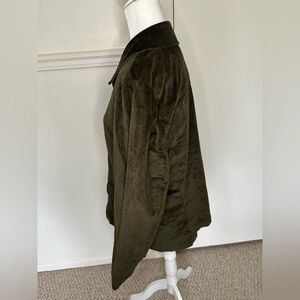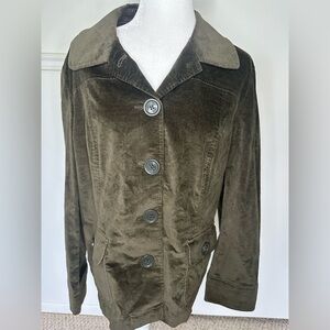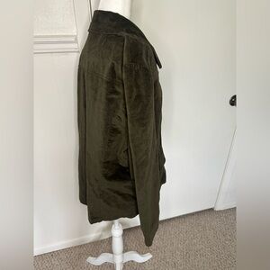Excellent condition size 18 Talbots Velvet Olive Green Jacket. Its oversized fit and classic wide collar make it a versatile addition to your wardrobe, perfect for layering in cooler weather.
