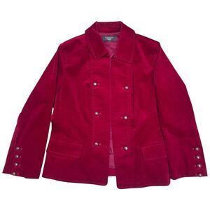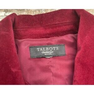 Talbots Velvet Petite Blazer Jacket Women’s 8P Red Wine Military Pea Coat Button