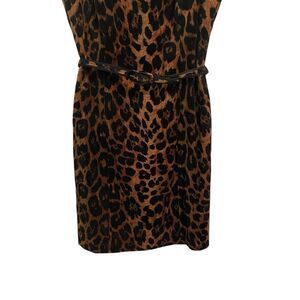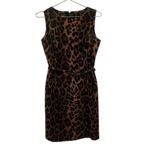 Talbots Velvet Sleeveless Animal Print Shift Dress Belted Size 8P NWT