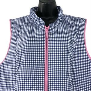 Talbots Vest Full Zip Blue White Plaid Polyester