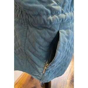 Talbots Vest Quilted Lined Size Medium Steel Blue Full Zipper Pockets Drawstring