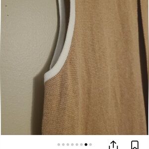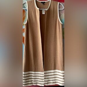 Talbots Vest Size Sm Tan Cream Long Open Cardigan Knit Sweater Cotton Blend